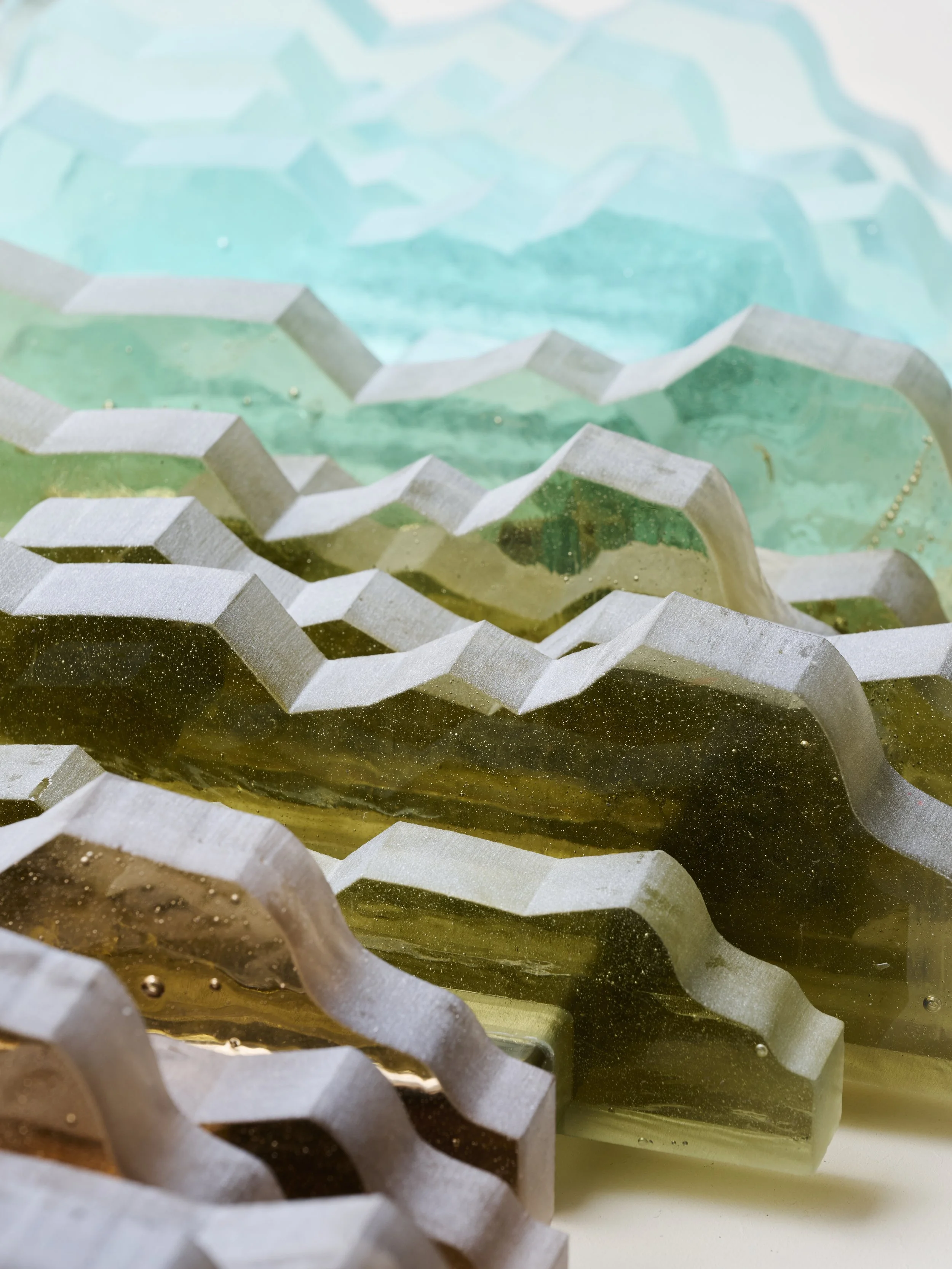 Cast Dalle de verre, hand-cut at the Gustav van Treeck workshops, Munich. Each piece is unique. Presented as part of the exhibition MENU, Milan Design Week 2026.
