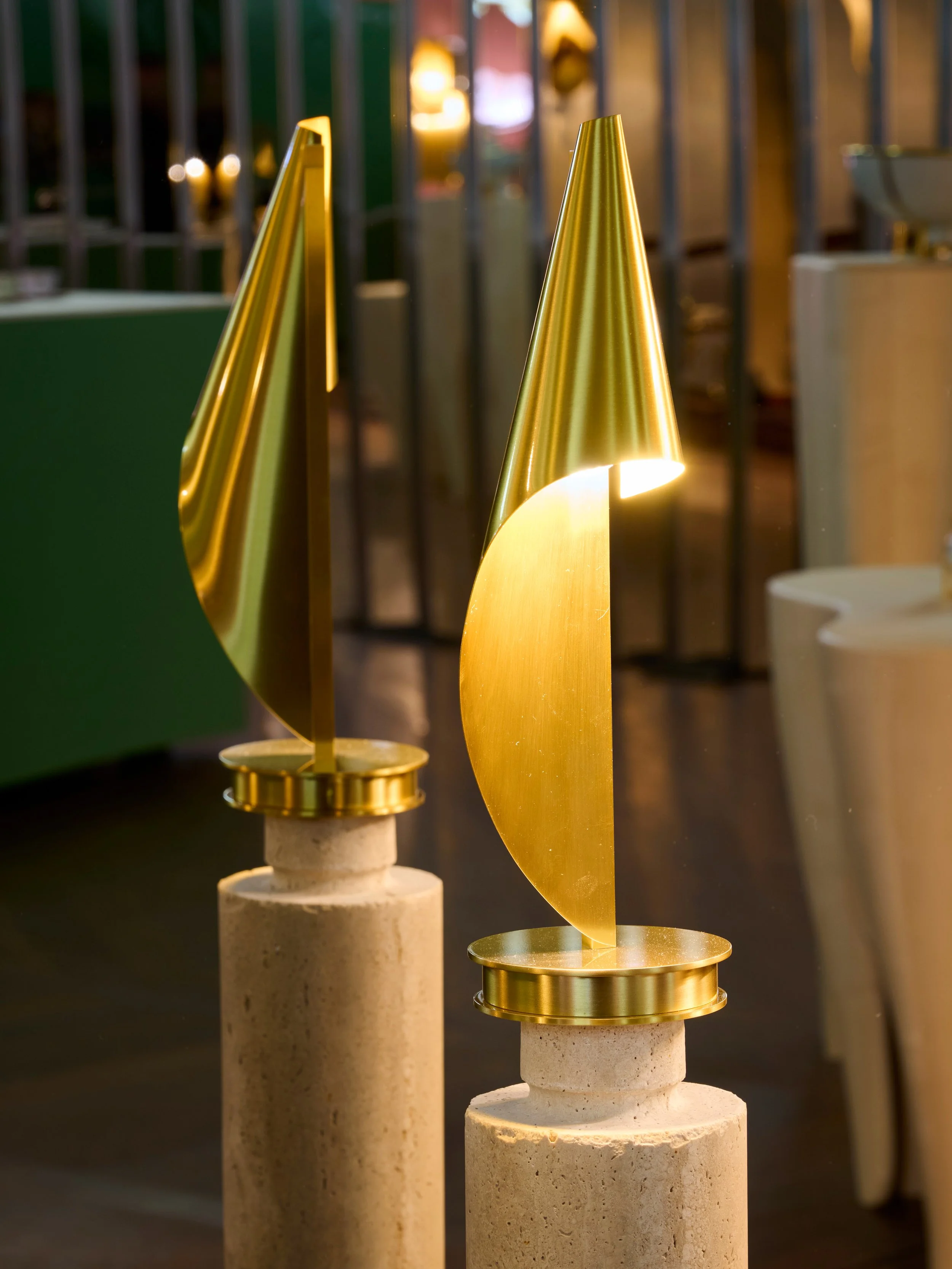 This dialogue between illumination, shadow, and structure produces a visually engaging presence, at once expressive and restrained, distinctive yet understated. Crafted from high-quality brass metal sheets, the piece draws on Neo Art Nouveau references and organic forms, elevating a simple motif into a considered and functional design object.