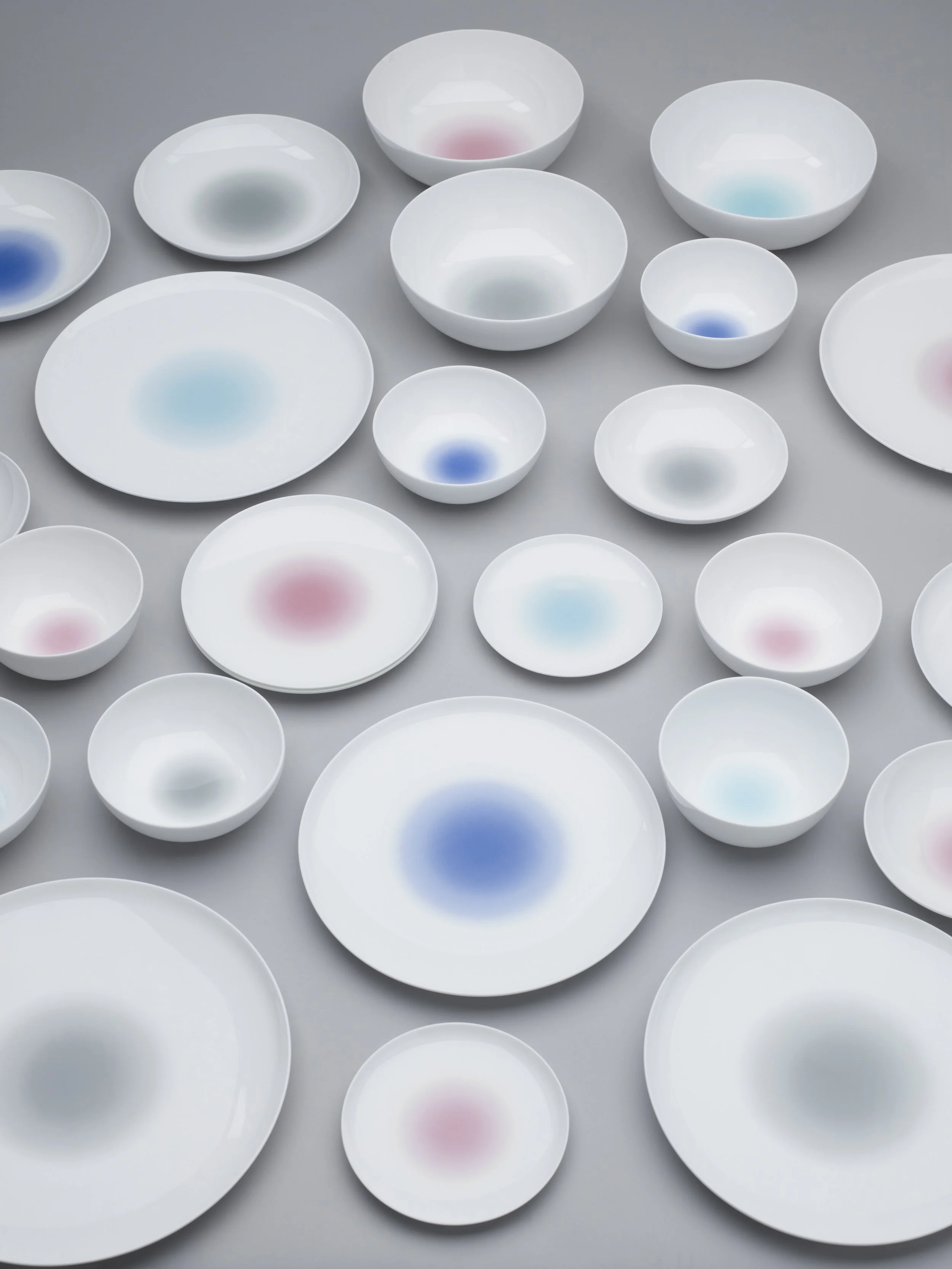 Tabletop Art Direction & Exhibition Design / Bespoke Commissions / Furniture / Lighting / Wallpaper / Textiles & Rugs / Tabletop / Silverware / Fashion / Technology Chefs Favorites Moire Glass Juno Ombra Silhouette Delice Carrara Golden Forest Black Forest Golden Pearls Gold Leaf Macaroon Goldline Blossom Landscape Cloud Golden Berry Sallus Sensu Voyage Equus Canvas White Sculptural Pomona Tempest